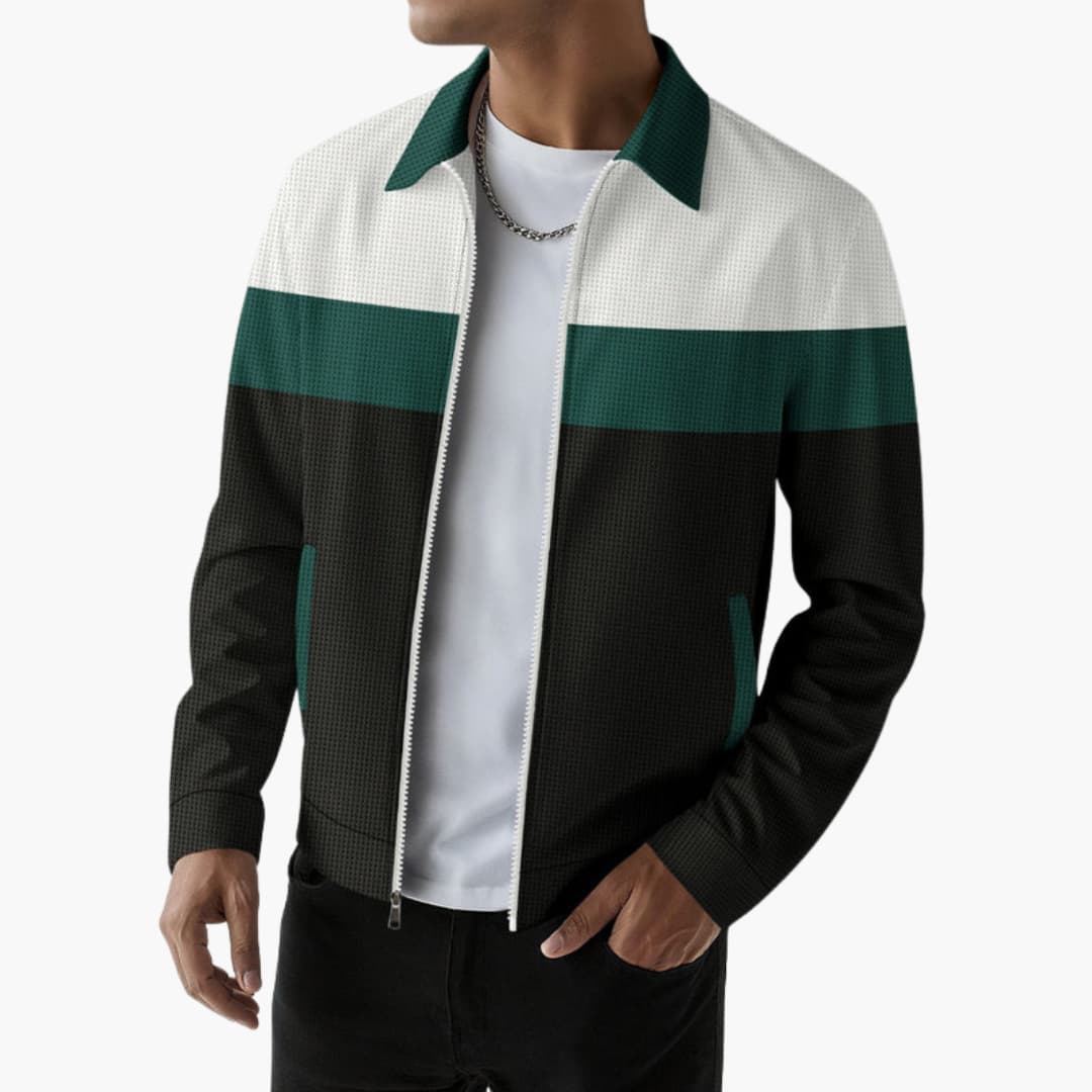 Elevate your wardrobe with this men’s fashion bomber jacket. Featuring a modern textured pattern with striking contrast stripes, it blends style and functionality effortlessly. Crafted from high-quality, breathable materials, this jacket ensures comfort for everyday wear or special occasions. It includes a full-length zipper, practical side pockets, and a stand-up collar for added protection, making it a versatile piece that pairs perfectly with casual or athletic outfits.
