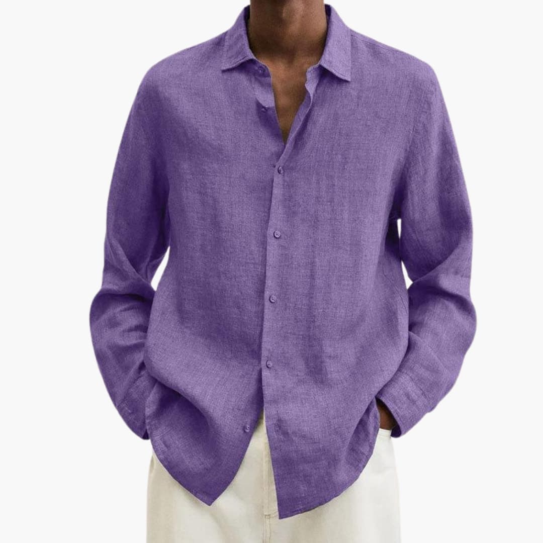 Men’s classic fit button-down shirt with a collared neckline and long sleeves