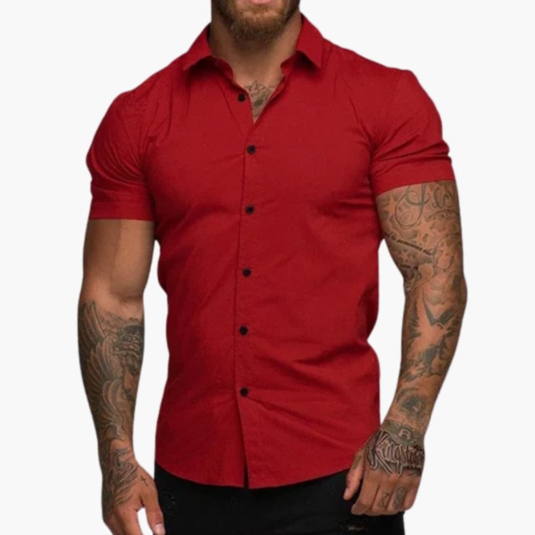 Men’s fitted short sleeve button-down shirt with a classic collar