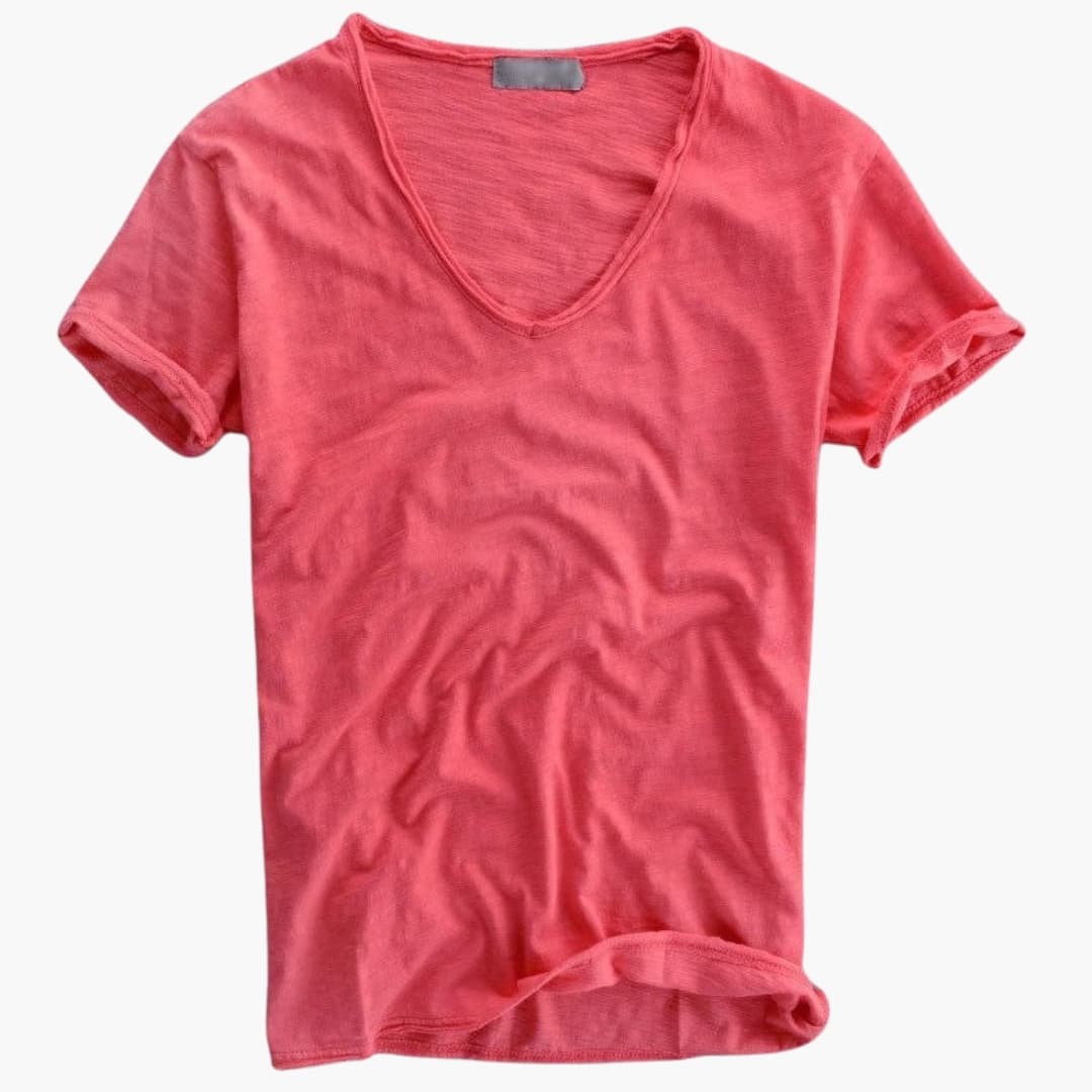 This men’s T-shirt features a round neckline with a pull-on design. It includes short sleeves with straight sleeve ends and a regular body cut. The hemline is straight for a clean finish. The exterior presents a plain surface with an even texture across the garment.