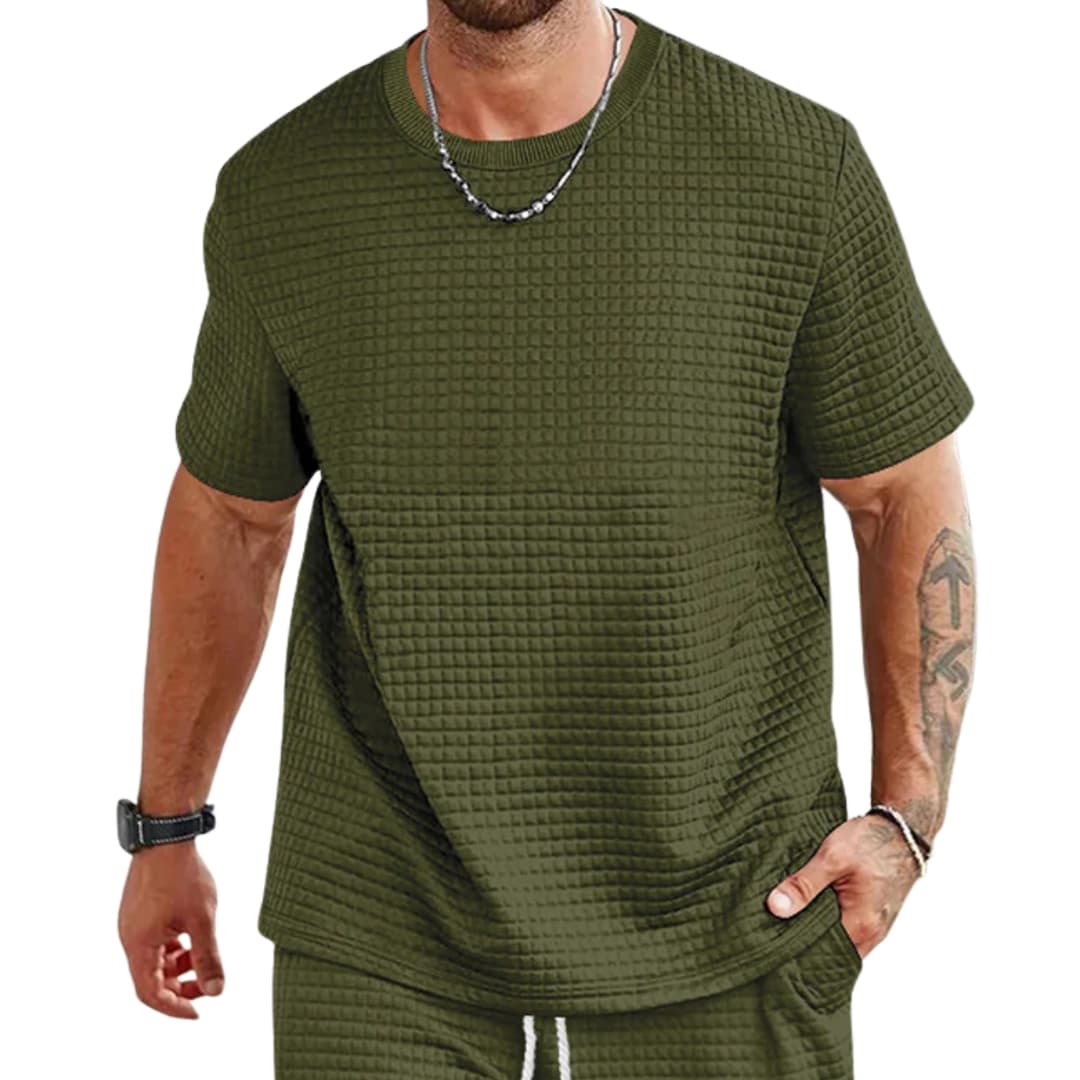 Men’s Textured Crew Neck Short Sleeve Casual T-Shirt