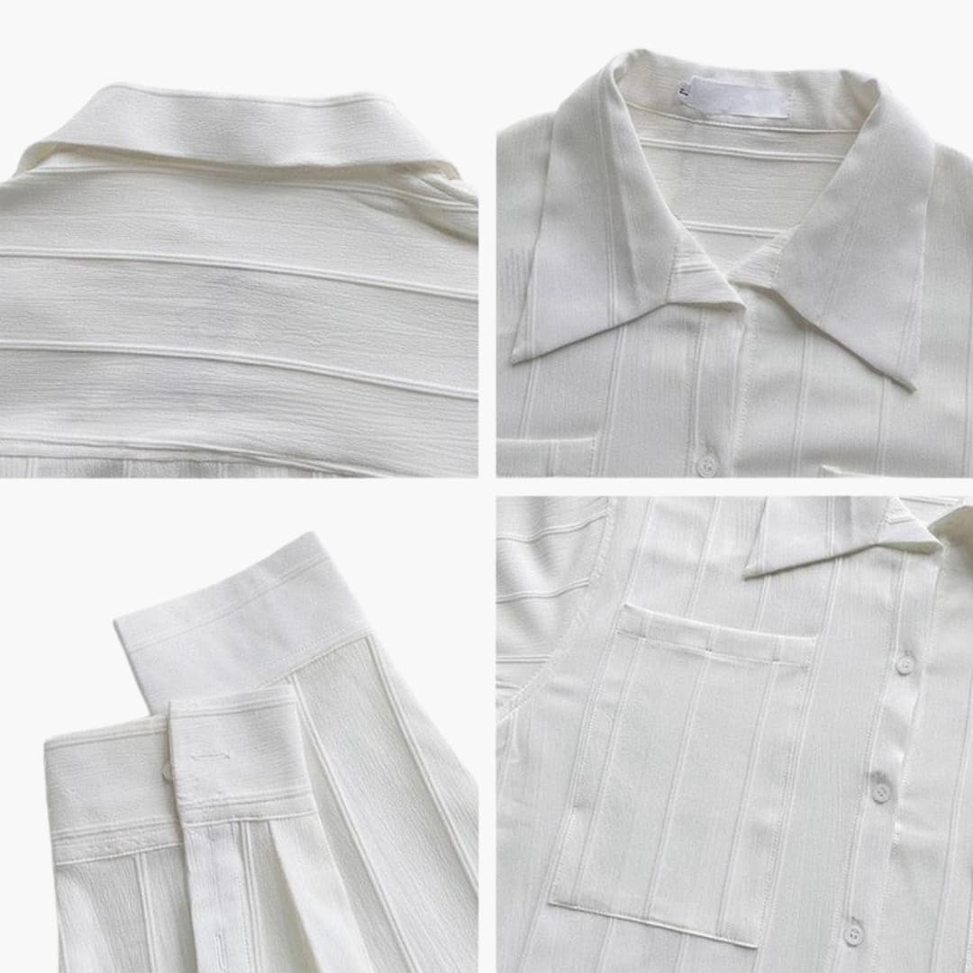 Overall Design: Neutral design focusing on the neck, sleeves, and hem.